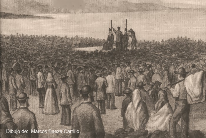 A las ocho menos diez de la mañana del día 2 de Julio de 1.881 salieron los reos de la capilla del Convento de Nuestra Señora de las Nieves hacia el patíbulo en un carro, acompañados del Alguacil, el Escribano, los Sacerdotes que les asistieron y la fuerza pública que les dio escolta, para ser ejecutados por el procedimiento del garrote vil. El verdugo se había desplazado expresamente desde Sevilla para llevar a cabo la ejecución ya que tenía jurisdicción sobre los reos a ajusticiar en Canarias, una vez terminada la ejecución intervinieron los médicos cirujanos Manuel Pestano Guzmán y Pedro Cruzat Escardó, quienes reconocieron a los ajusticiados y posteriormente pasaron a declarar ante el Juez sobre si eran o no cadáveres.